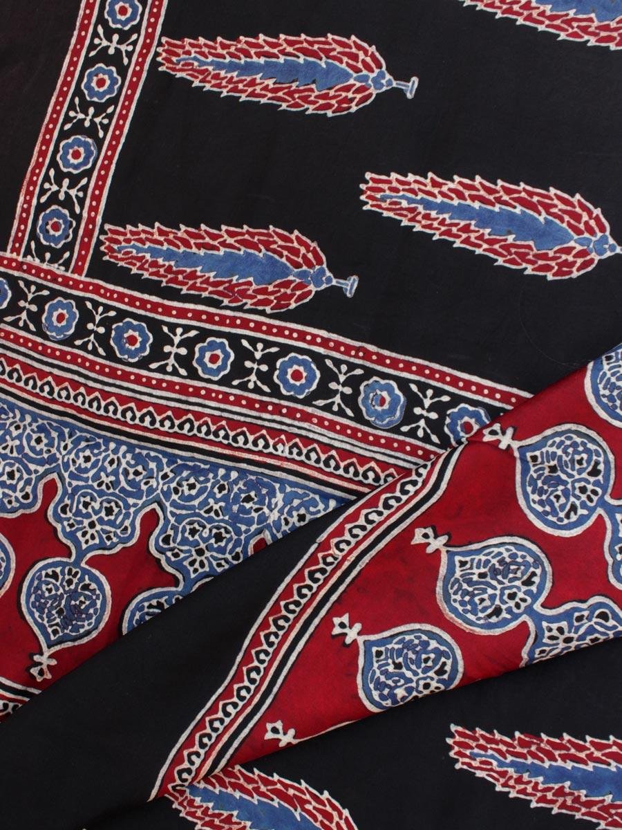 Black, Maroon-Red, blue and off-white Ajrakh hand block-printed Stole-Scarf.