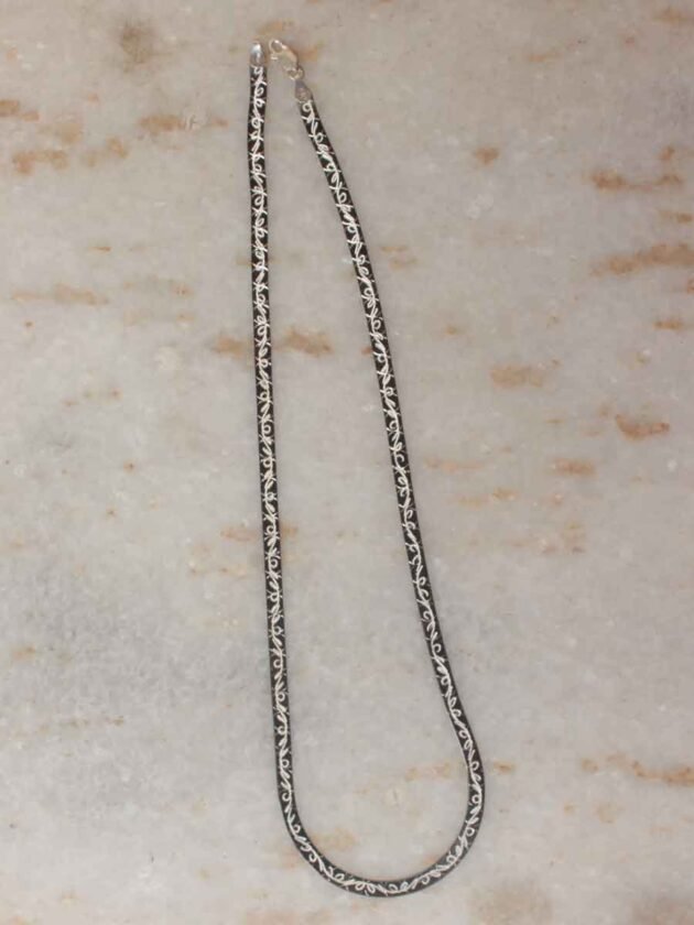 Trendy black enamelled, handcarved, Real Silver necklace-chain .