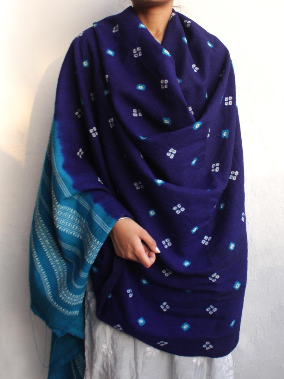 Craft– Handloom Woven Bhujodi Shawl by Vankar Community from Gujarat embellished with bandhej tie-dye