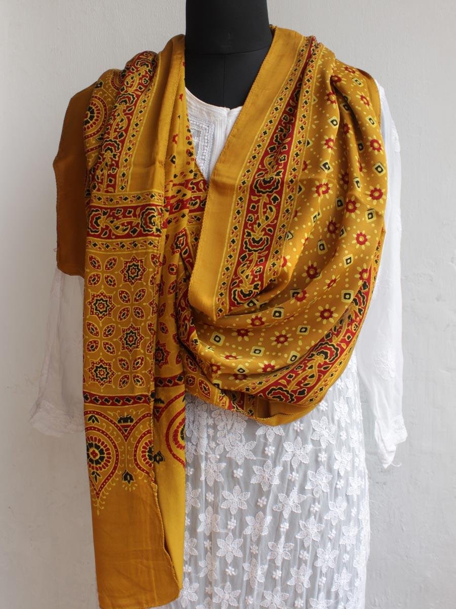 Stole reflects different shades of yellow under different light from turmeric-yellow to Brownish-Yellow.