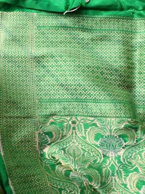 Washing Instruction- Dry wash only. Do not machine wash or use harsh detergents. Do not keep soaked in detergent or water. Do not steam-iron. Contact with water or steam may lead to blackening of zari.