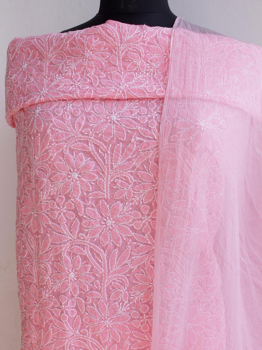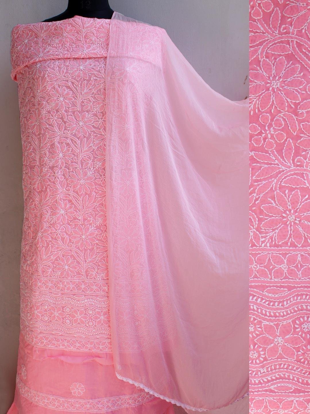 Dupatta- White chiffon with Crochet border on both sides : Length- 2.42 meters Width- 1.05 meters