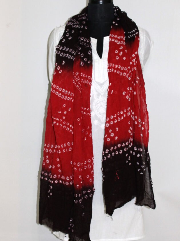 Hand-dyed, rose-red and darkest brown bandhani duaptta