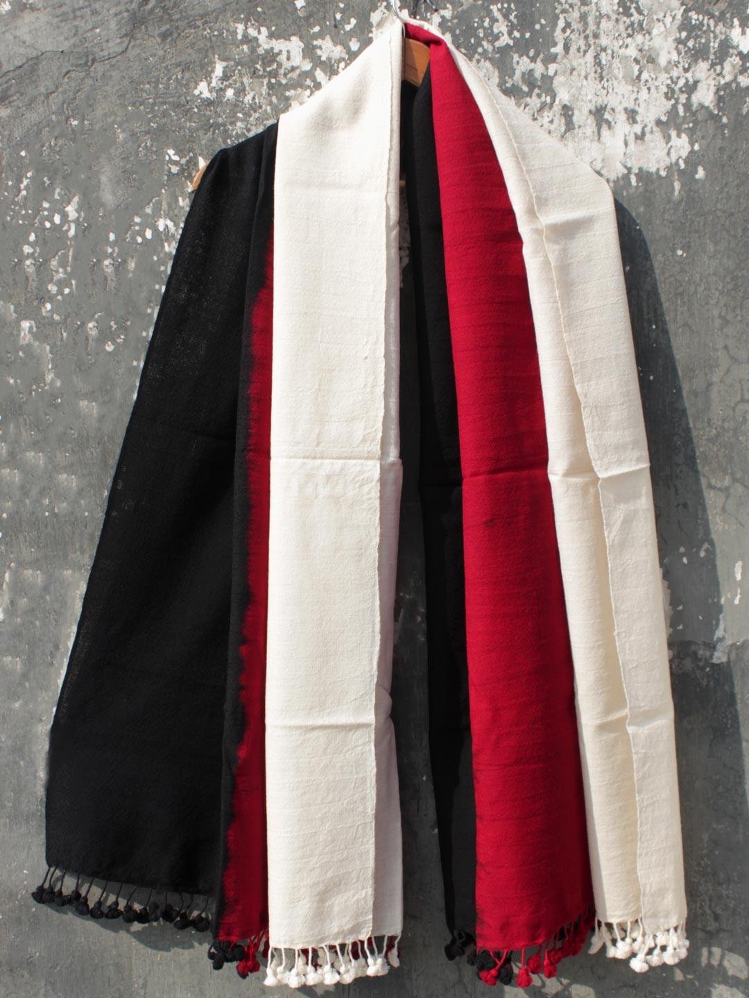 Craft– Handloom Woven Bhujodi Shawl by Vankar Community from Gujarat embrllished with Shibori gradient tie-dye