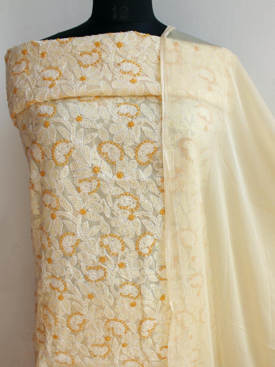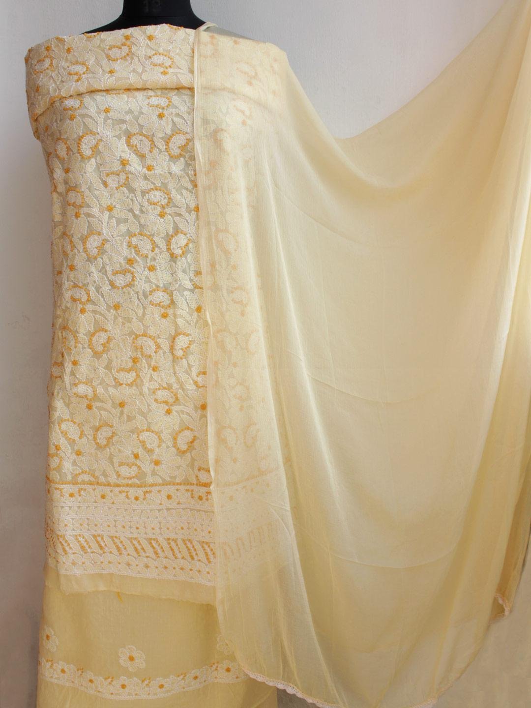 Dupatta- White chiffon with Crochet border on both sides : Length- 2.42 meters Width- 1.05 meters